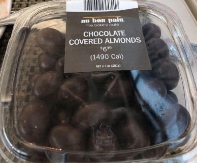 - A third client learning that one “container” of dark chocolate almonds was about ½ a client’s calories for the day